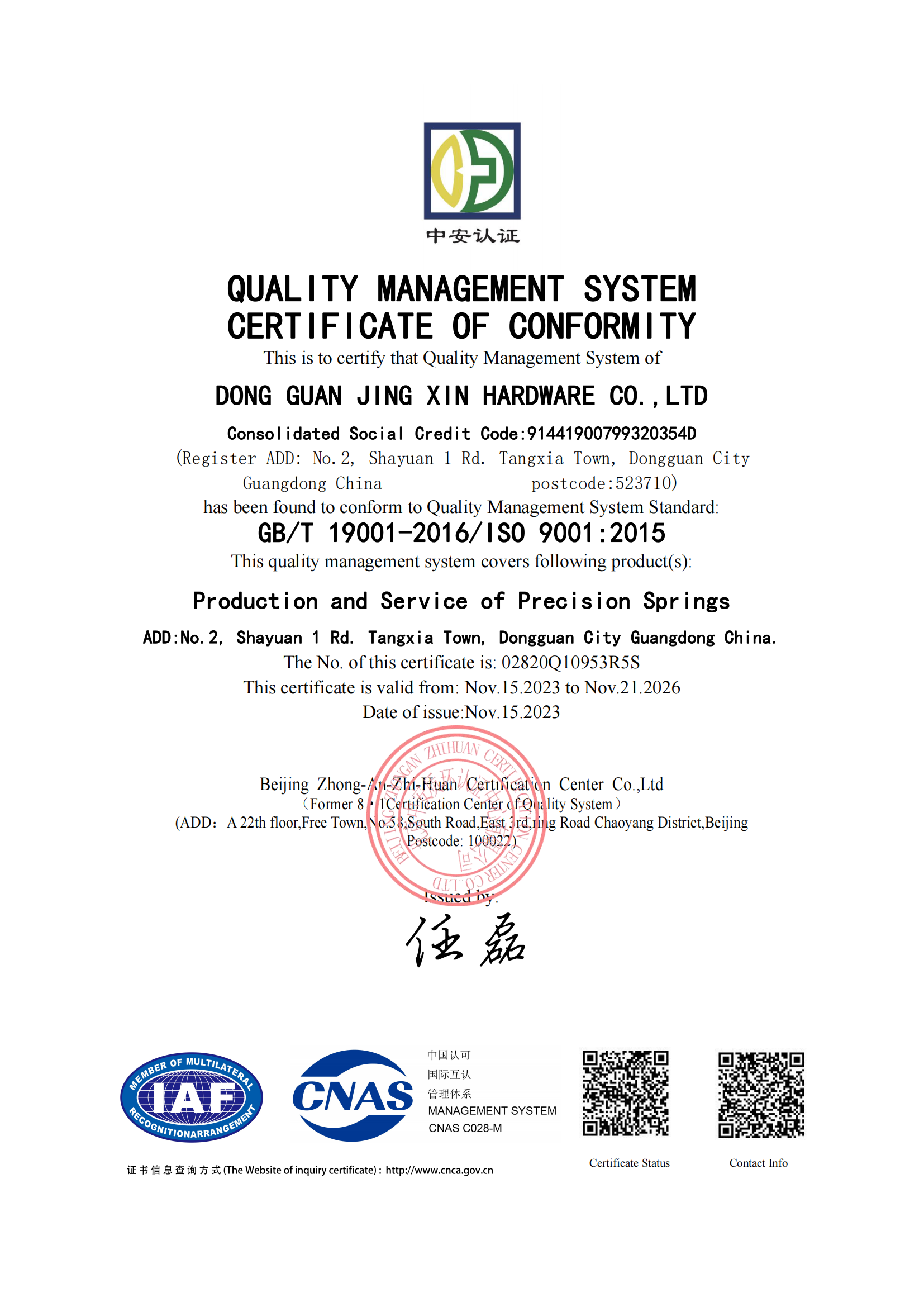 公司專心(xīn)致力於精密(mì)彈簧零件的研究開發與生產已近數十年,廣泛用於辦公設備(bèi)、醫療設備、工程機械、汽車、摩托車等多個領域。憑借先進的設備,豐富的生產實務經驗,強大(dà)的技術團隊,為產品質(zhì)量的不斷優化提供了有效保障。並堅守"誠信專業、質量第一、客(kè)戶至上、持續改進"的質量方針。目前(qián)已經(jīng)通過ISO9001和 ISO14001體係認證。未來(lái)的我(wǒ)們會持續不斷的創新和改進,虔誠的服務社會,服務於(yú)我們的客戶,堅持綠色采購標準,保護地球(qiú)。讓我們攜手並肩,互惠互贏,開創輝煌的未來!